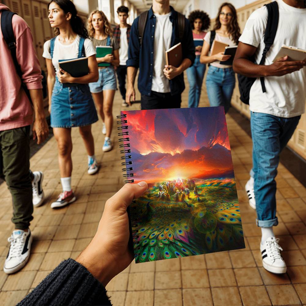 Embrace both the sacred serenity of Radha and Krishna's beauty, and your devotional service, with this colorful notebook. The cover features a stunning portrayal of these divine figures, radiating a sense of timeless love and loyalty.